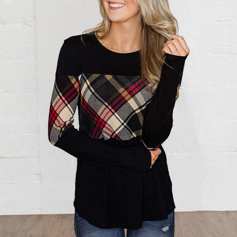 Women's Long-sleeved Solid Color Pullover T-shirt
