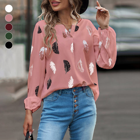 Features: Feather print, sexy V-neck. Casual floral print loose top shirt is popular with modern women of all ages for everyday fashion.