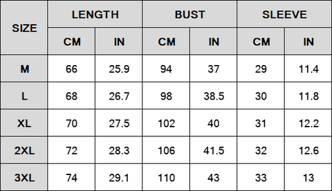 Size: M-3XL(cm/in)