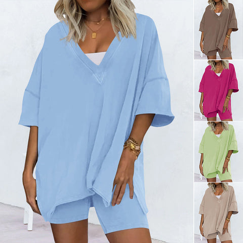 Be part of your daily life: This oversized boyfriend tee comes with a pair of matching biker shorts, a chic and energetic sexy style.