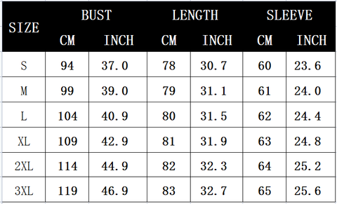 Size: S-3XL(in/cm)
