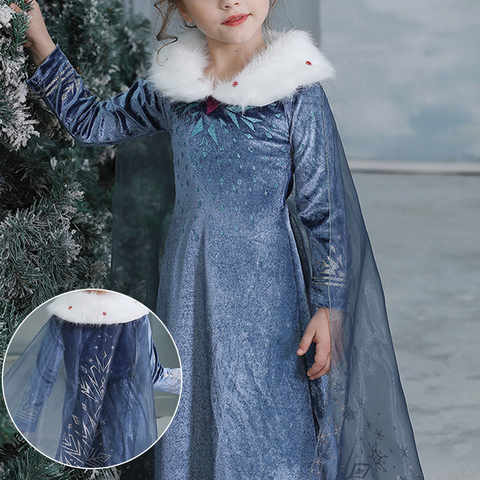 Gorgeous Design: There are delicate ice and snow patterns all over the body, a white fluffy collar, and rubies embellished with a princess-like sense of luxury. A princess dress that little girl princesses want to wear every day.