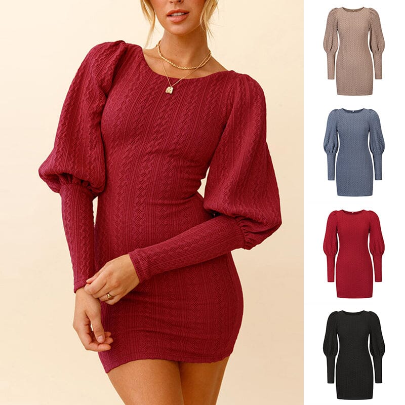 • Load image into Gallery viewer, Knitted Long Sleeve Short Dress