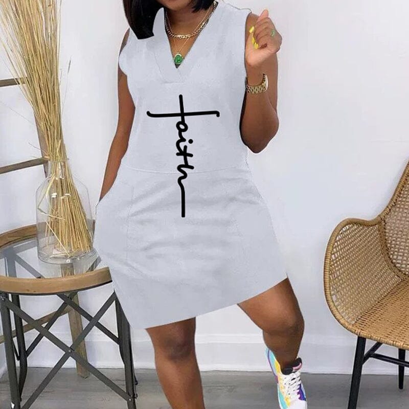 1 × Letter Print Dual Pocket Sleeveless Dress