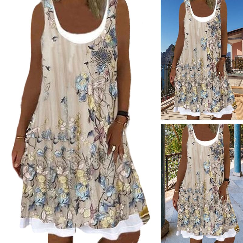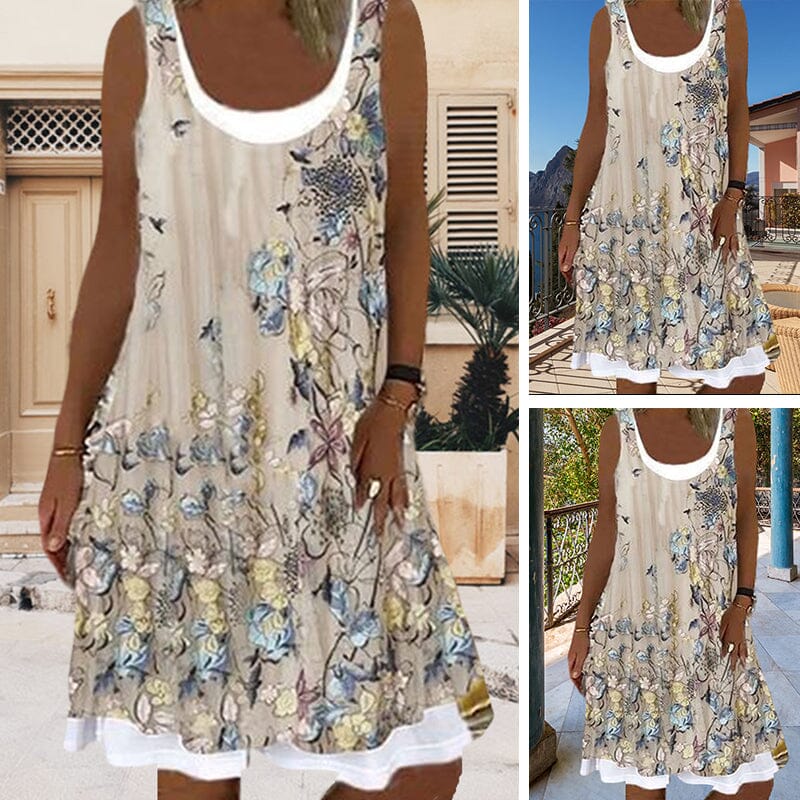 • Load image into Gallery viewer, Printed Sleeveless Crewneck Dress