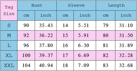 Size: S-2XL (in)
