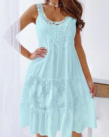 - 1* Round Neck Solid Color Sleeveless Lace Panel Dress