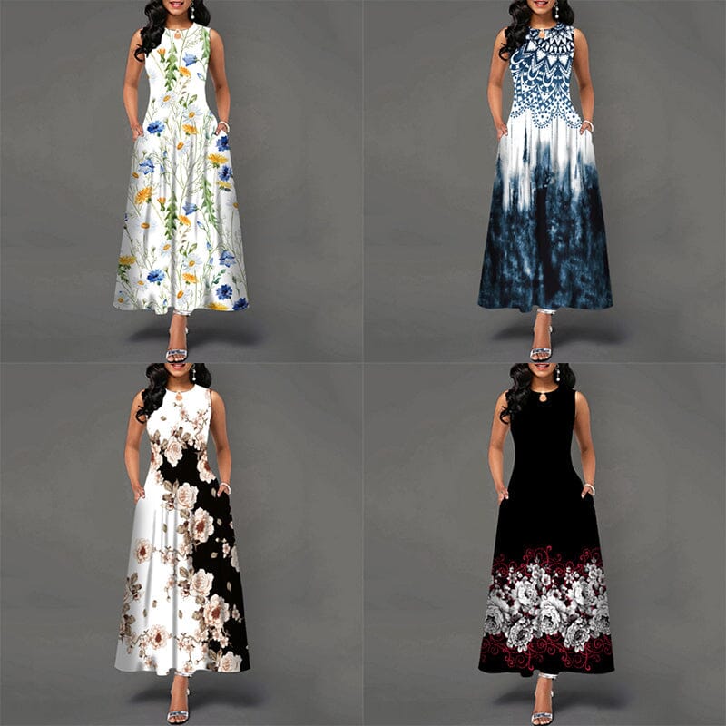 - 1* Sleeveless Print Swing Dress