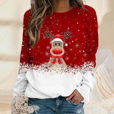 - 1* Snowflake Christmas Deer Print Crewneck Sweater