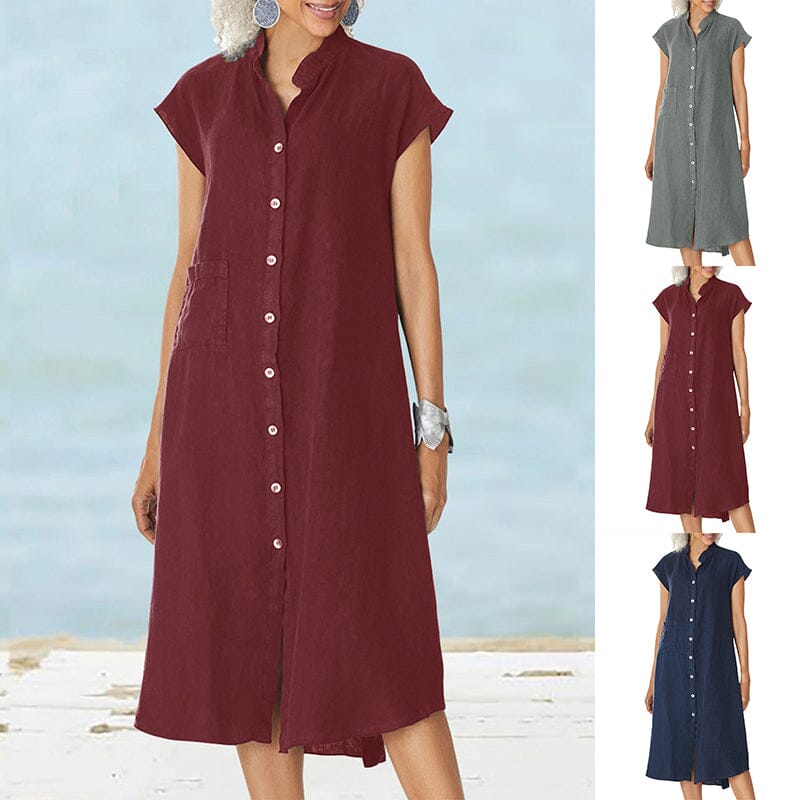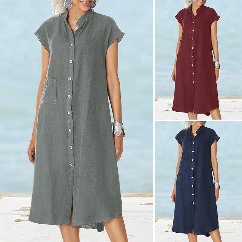 - 1 * Women's Button-down Cotton Linen Loose Dress