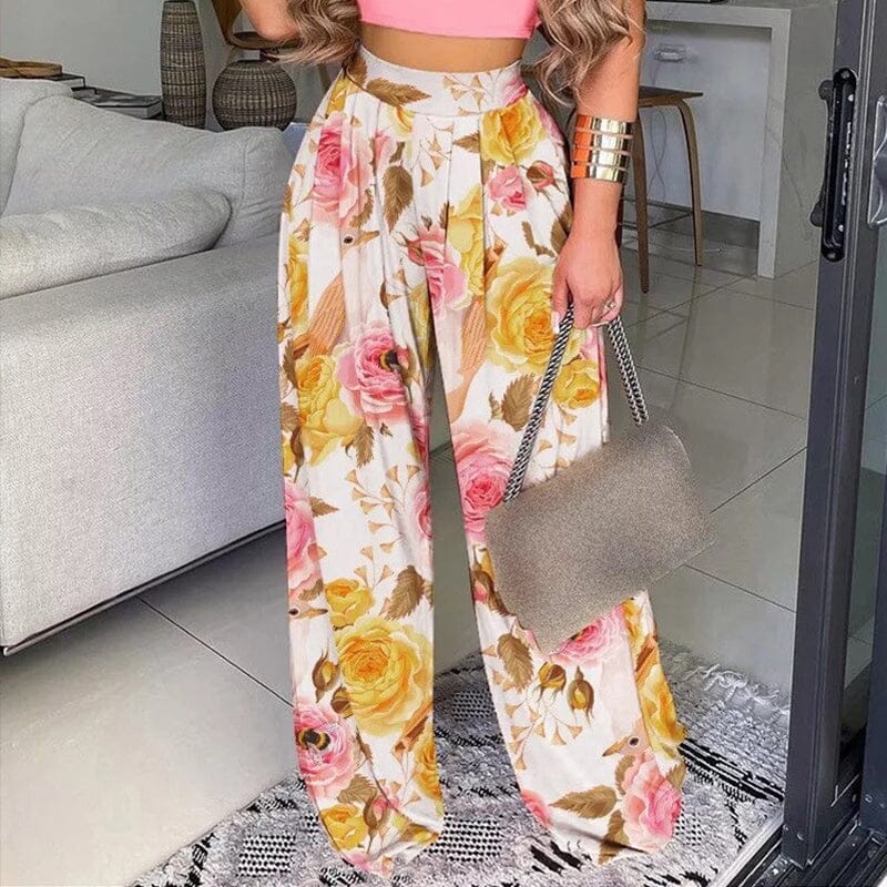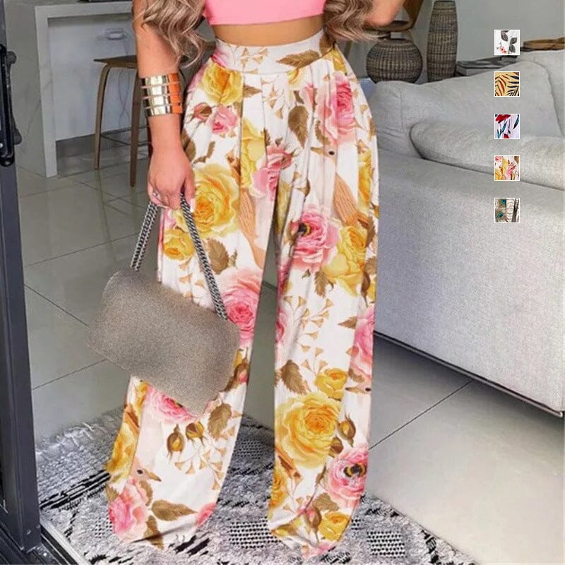 Design: Flared Pants with High Waist, Ethnic Print, Wide Leg Fit, Wide Leg Pants. Regular-fit, high-rise wide-leg flared trousers with comfortable stretch for a relaxed, relaxed fit.