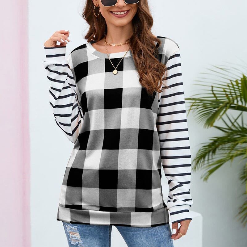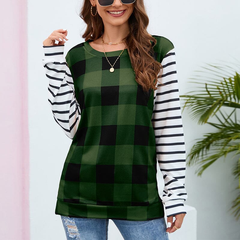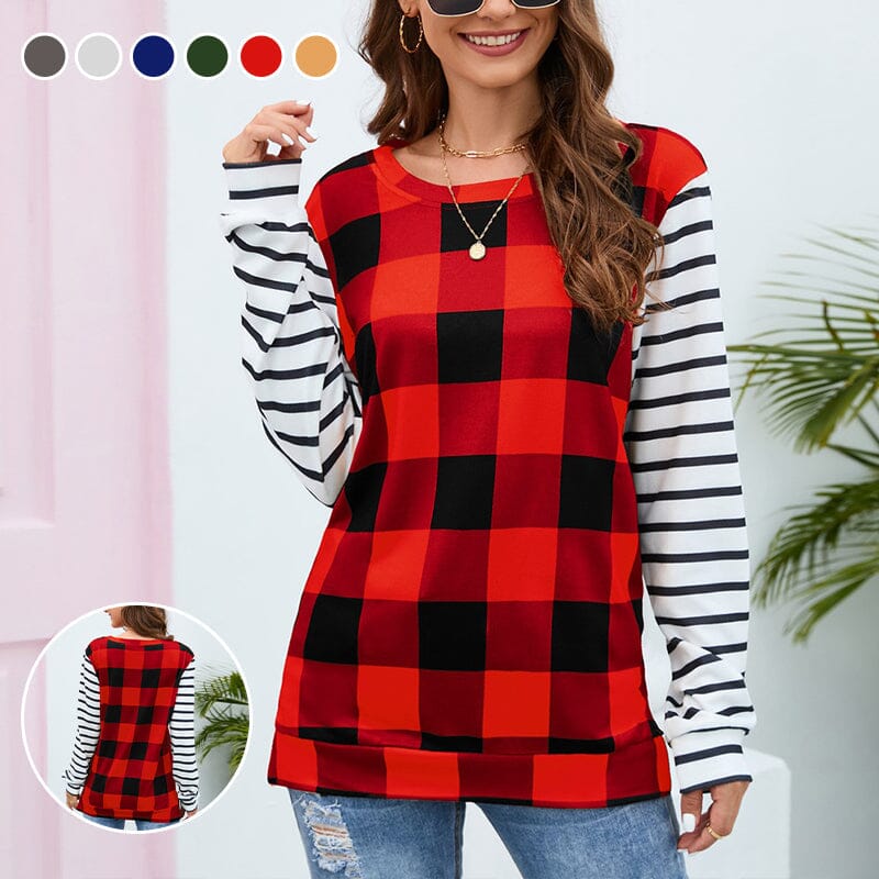 - 1 * Plaid Stripe Crew Neck Sweatshirt