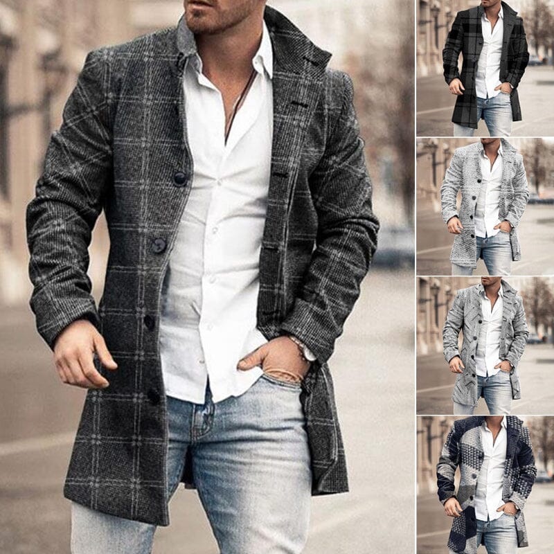 Design: Long wool coat with side pockets and extra inner pocket for cell phone, keys & wallet. The interior features a fixed one piece quilted jacket with a high stand collar for protection from wind & cold.