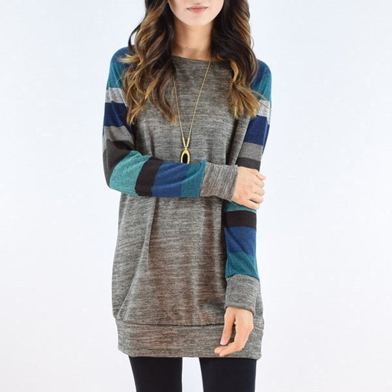 • Load image into Gallery viewer, Striped Printed Crew Neck Oversized Sweatshirt