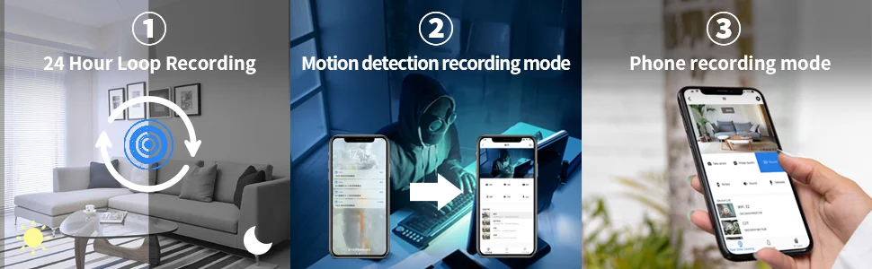 Thieves: Do you want to protect your family and assets? Our camera includes Night Vision - 6 hidden infrared LEDs without illumination, 5 meters of night vision distance, remotely turned on or off so you don't have to worry about night recording. It can also be used in shops, conference rooms or to watch pets or babysitters.