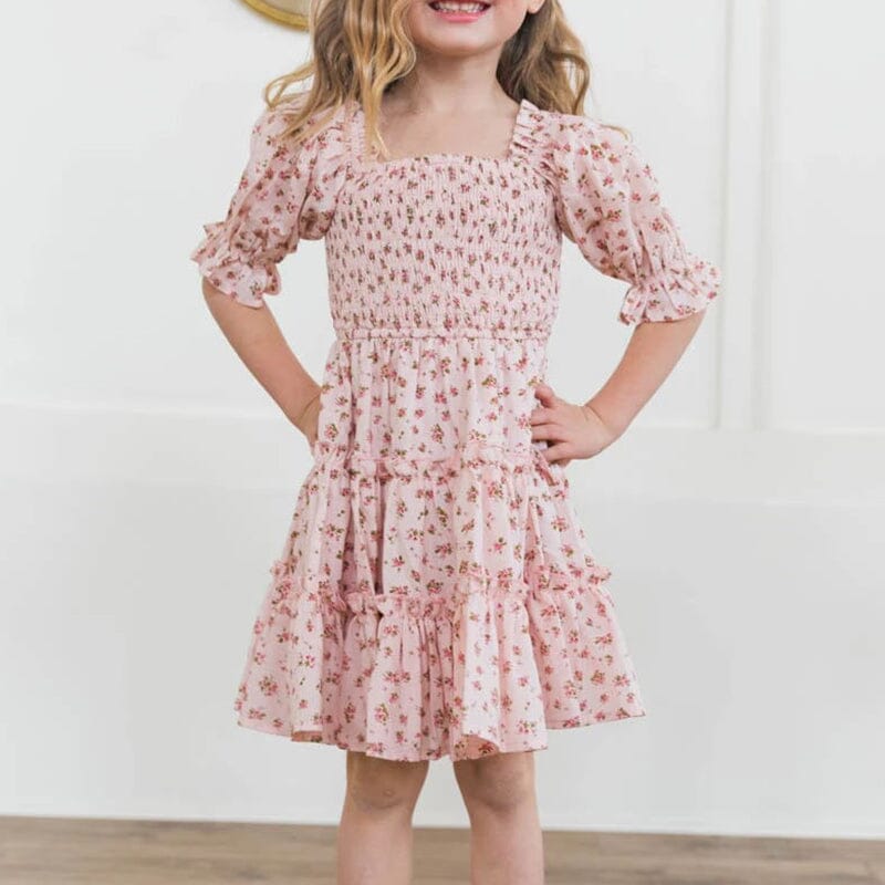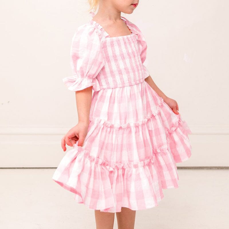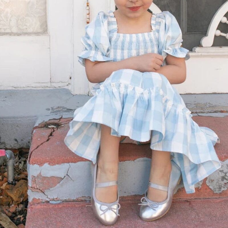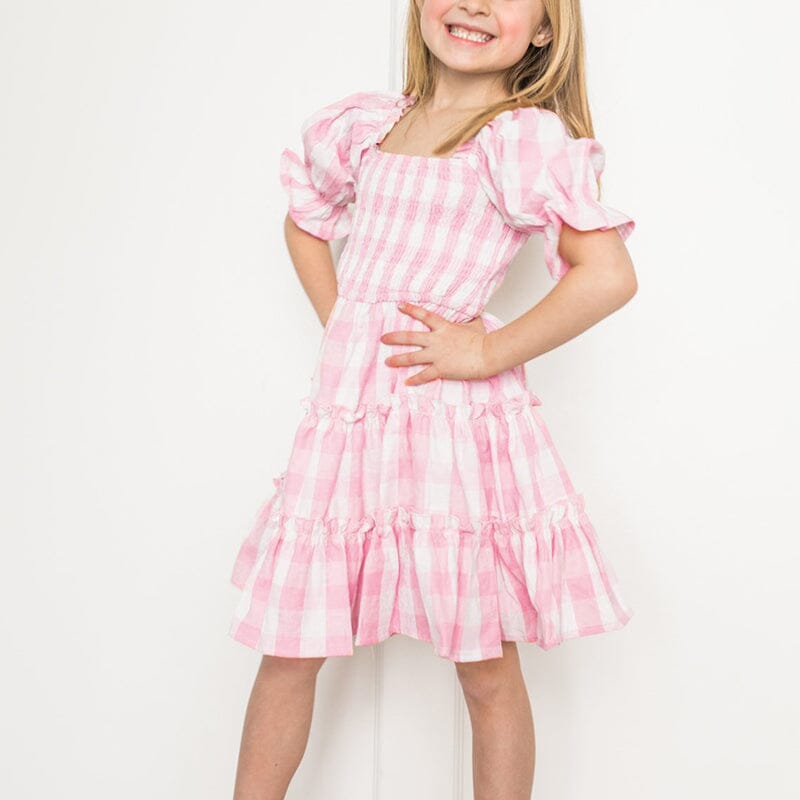 - 1*Children's Square Neck Lantern Sleeve Floral Plaid Dress