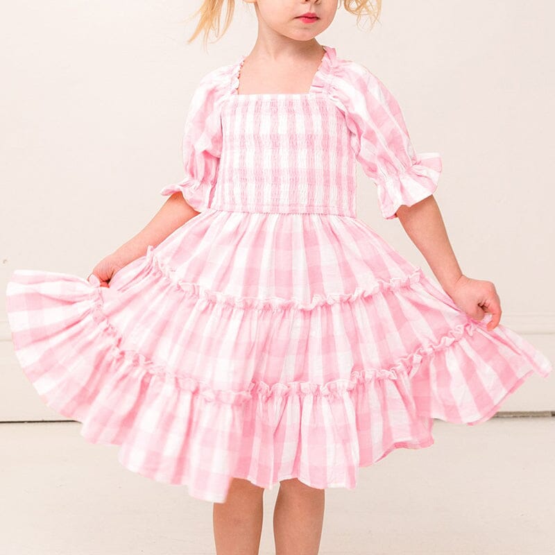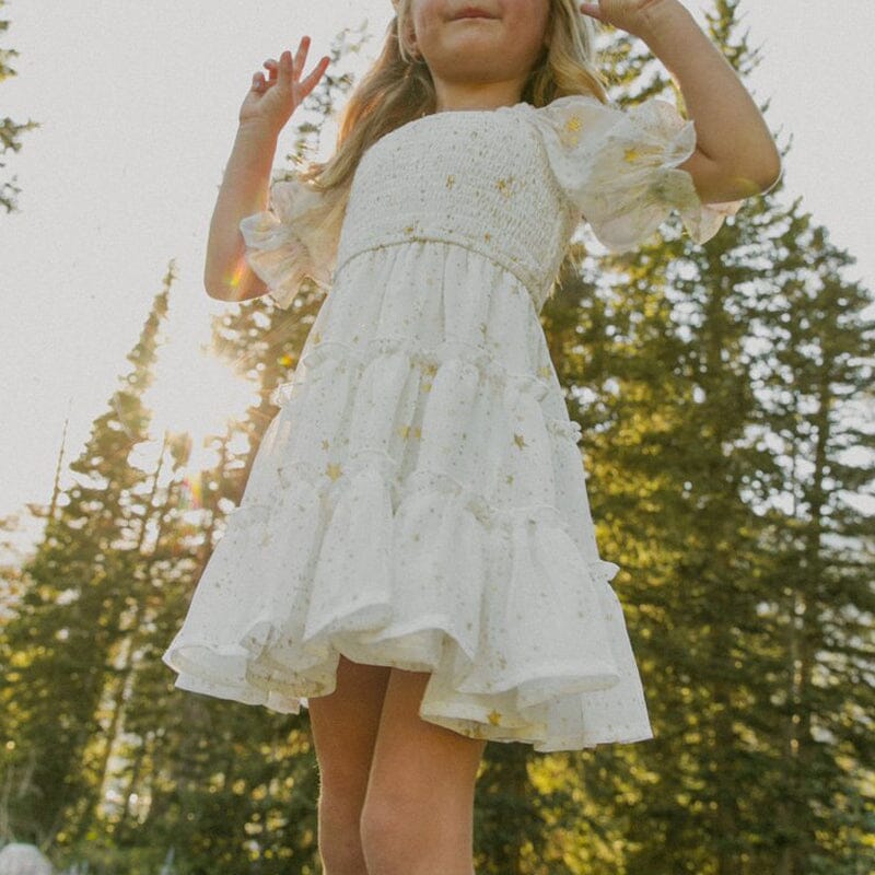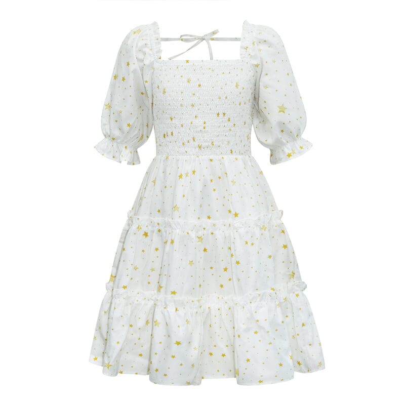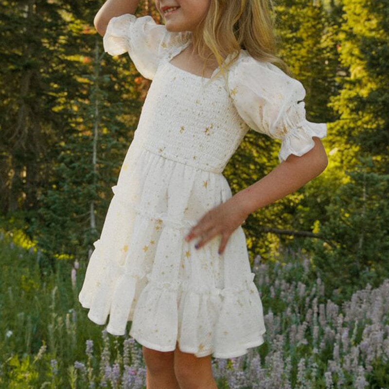 Design - Half Lantern Sleeve, Square Neck, A-Line, Stretchy Frill at the top, Ruffle Detail and Elastic Inserts at sleeve cuffs, Above Knee Length, Girls Cute Mini Dress Short Skirt.