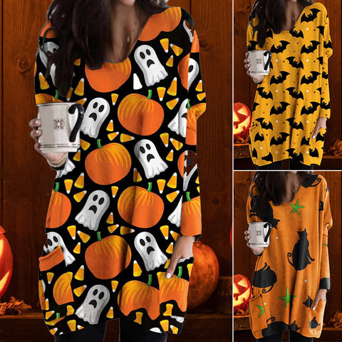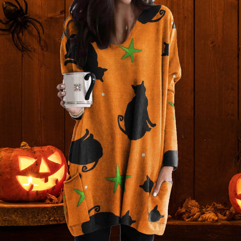 - 1 * Halloween Cat Pumpkin Long Sleeve Dress