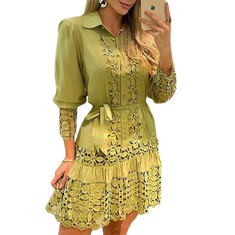 Button Placket --- Button closure for easy on and off. Elegant and flowing mini dresses can be worn with heels, flats or sandals for a sophisticated and feminine look.